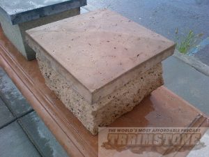 Trrimstone offers real precast concrete wall caps and column caps at unbelievable prices with uncompromising quality. Also referred as, pilaster caps, post caps or pier caps. We offer it in simple square edge peaked style: Eco Series.